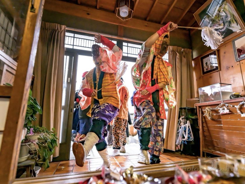 There are two styles of Harigoma: otoko (menʼs) harigoma and onna (womenʼs) harigoma. Both involve very lively dance, similar to other kadozuke, or traditional Japanese door-to-door New Yearʼs performances. Pay attention to the way the performer talks – youʼll notice sometimes they stray from the script and improvise.